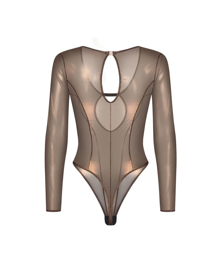 Soranna – eleganckie body z długim rękawem i złotym połyskiem!Zmysłowe body Soranna wykonane z transparentnej siateczki ze złotym akcentem subtelnie otula ciało, podkreślając jego naturalne kształty.Dopasowany krój eksponuje sylwetkę, a długie rękawy nadają całości elegancki, wyrafinowany charakter.Delikatny połysk tkaniny dodaje blasku i kobiecego uroku, idealnego zarówno do zmysłowych stylizacji, jak i wieczornych kreacji.Najważniejsze cechy:body z długim rękawemtransparentna siateczka ze złotym akcentemregulowane zapięcie w krokudopasowany krój podkreślający sylwetkęskład: 95% poliester, 5% elastandesigned in EUProdukt nieodpowiedni dla dzieci poniżej 3 lat – ryzyko zadławienia z powodu małych części mogących odłączyć się od produktu.????
