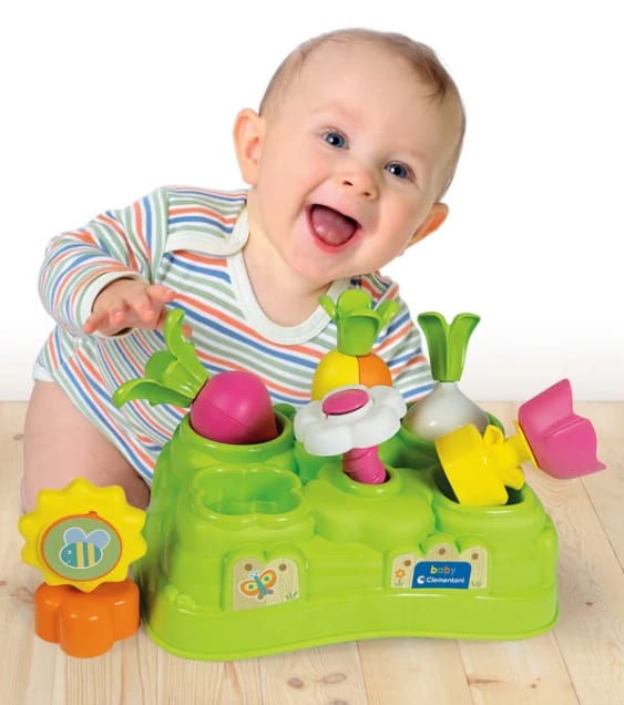 Bardzo kolorowy i wesoły ogród zaprojektowany, aby zapewnić dziecku zabawne i naturalne wsparcie, gdy odkrywa kształty i kolory oraz rozwija swoją zręczność manualną.