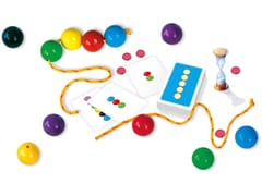 Miejsza, poręczna wersja gry uwielbianej przez wszystkich przedszkolaków. W trakcie gry odkryj kartę. Wpatrując się w nią przez kilka sekund, staraj się zapamiętaćkolejność kolorów. Po sygnale nawlekaj na linkę jak najszybciej kolorowe kule - zgodnie z układem odczytanym z karty. Wspaniałą zabawa, która jest jednocześnieznakomitym treningiem zręczności i świetnym ćwiczeniem pamięci. Poziom trudności należy dostosować do możliwości graczy (karty zwierają wzory od 3 do7 kolorowych kul). Sprawdź swoją pamięć i zręczność.55 kart, 12 kul, klepsydra, 60 żetonów, 2 sznurki, instrukcja.