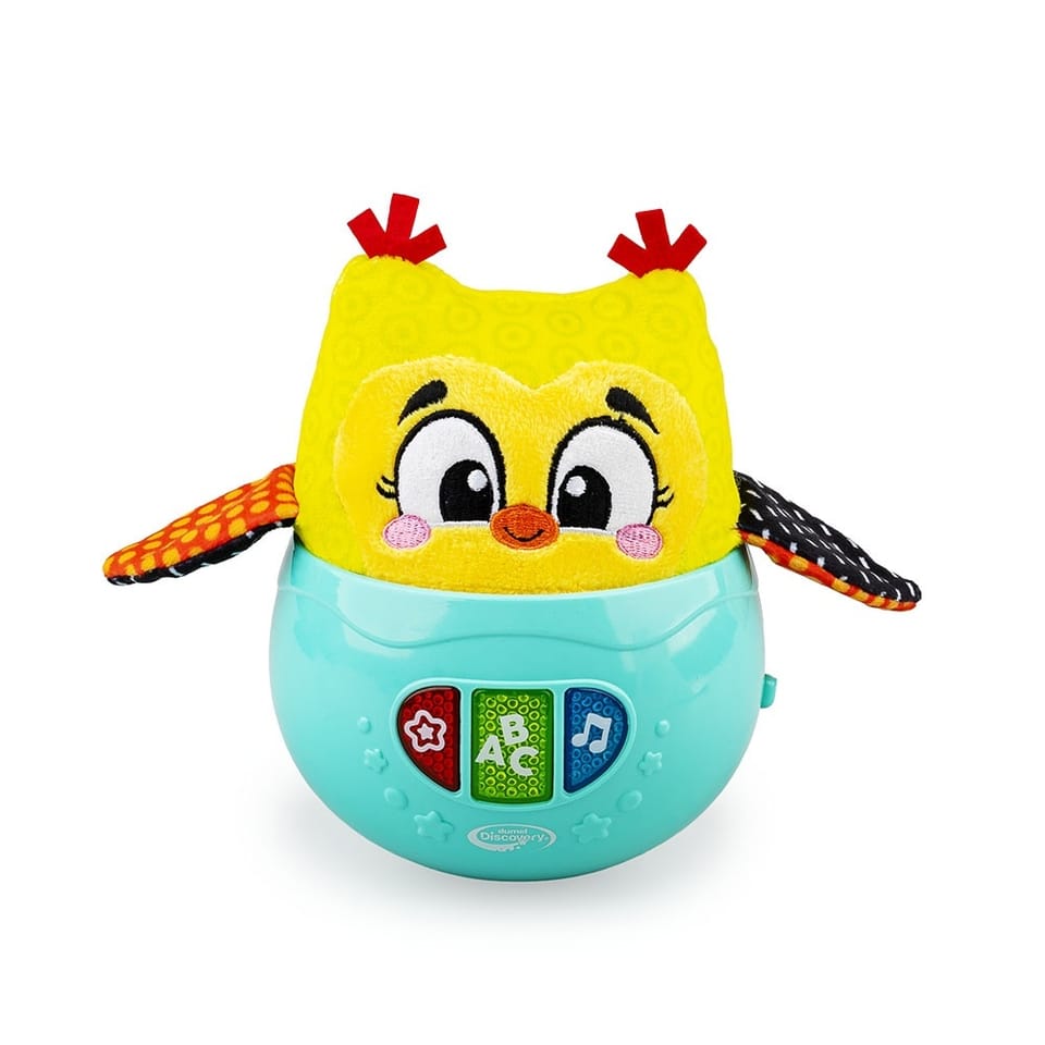 Rozkołysz się do zabawy razem z Tosią – rozgadaną sówką! Ptaszek buja się na swojej zabawkowej skorupce, bawiąc malucha dźwiękami. Tosia zna kilka krótkich rymowanek, potrafi także odtwarzać piosenki i melodie, a za uruchomienie poszczególnych dźwięków odpowiadają kolorowe przyciski na skorupce. Naciśnięcie kwiatka aktywuje tryb wierszyków, symbol ABC uruchamia piosenki w języku polskim, a nutka odtwarza wesołe melodie. Dzięki zaokrąglonej podstawie, sówka pięknie buja się na wszystkie strony. Wystarczy, że maluch pchnie ją do tyłu lub w bok, a Tosia zakołysze się i powróci do bazowej pozycji.