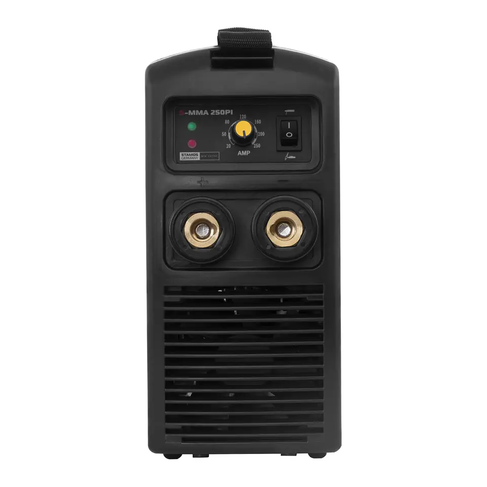 Wydajna spawarka MMA niemieckiej marki Stamos Germany przeznaczona do spajania metali za pomocą elektrody otulonej. Została wykonana z wysokiej jakości materiałów i nowoczesnych podzespołów, dzięki którym jest nie tylko niezawodna, ale także wydajna. Jej cykl pracy wynosi 80% przy prądzie spawania mieszczącym się w granicach 250 A, a zastosowana w niej technologia IGBT zapewnia jej odporność na zwarcia.