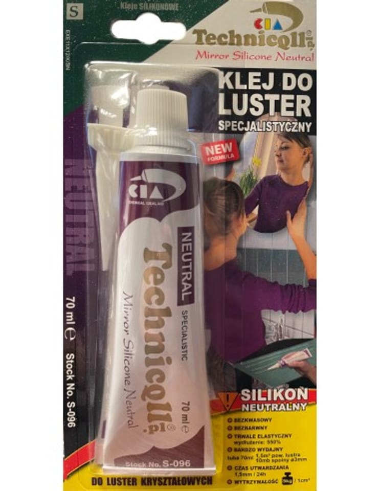 Specjalistyczny klej do luster jest jednoskładnikową masą klejąco-uszczelniającą o neutralnym systemie utwardzania. Używany tam, gdzie silikony octanowe nie mogą być stosowane ze względu na agresywne (kwasowe) działanie.