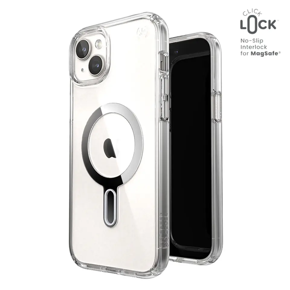 Speck Presidio Perfect-Clear ClickLock & Magsafe - Etui iPhone 15 Plus / iPhone 14 Plus Clear / Chrome Finish / Serene Silver