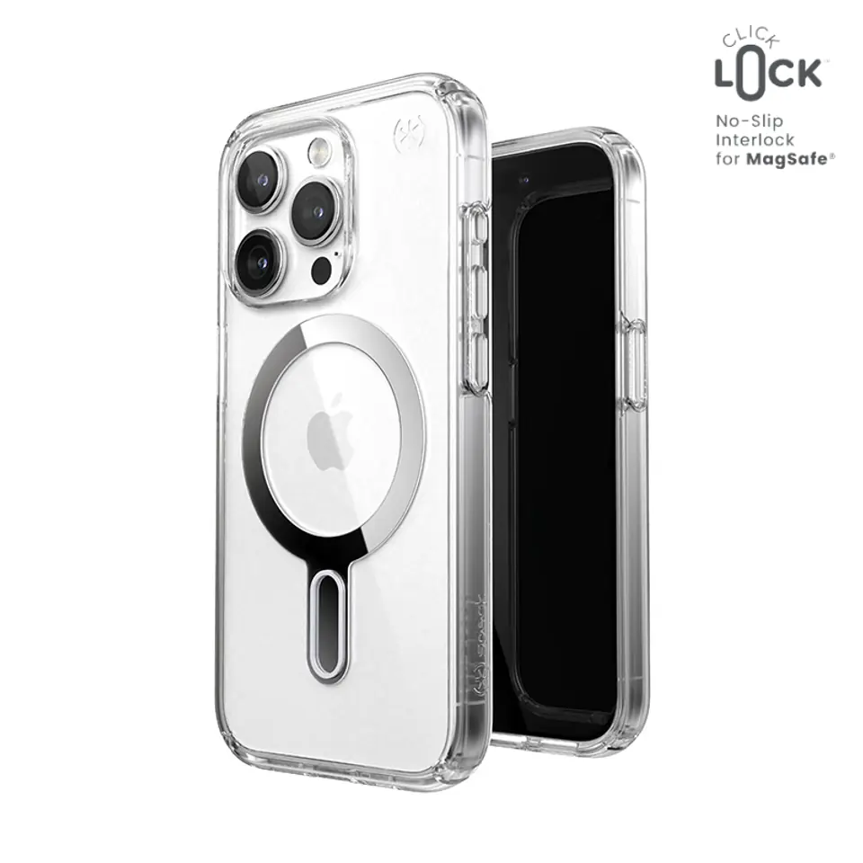 Speck Presidio Perfect-Clear ClickLock & Magsafe - Etui iPhone 15 Pro Clear / Chrome Finish / Serene Silver