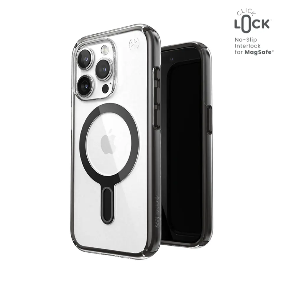 Speck Presidio® Perfect-Clear MagSafe® z technologią antypoślizgową ClickLock™ Interlock to przezroczyste etui z wbudowanym magnesem, kompatybilnym z akcesoriami Apple MagSafe®. Konstrukcja etui wykonana została w technologii IMPACTIUM™ Shock Barrier, która chroni telefon przed uszkodzeniami podczas upadku z wysokości prawie 4 m. To wszystko dzięki dwóm warstwom: zewnętrznej, która rozprasza siłę uderzenia oraz wewnętrznej IMPACTIUM™, absorbującej wstrząs.Podwyższona ramka wokół ekranu i aparatu zapewnia dodatkową ochronę przed zarysowaniami i uszkodzeniami.Innowacyjna technologia ClickLock™ Interlock tworzy antypoślizgową blokadę magnetyczną między etui Speck MagSafe® a wybranymi akcesoriami Speck, eliminując przypadkowy upadek urządzenia.Etui wykonane zostało w 50% z tworzyw sztucznych pochodzących z recyklingu, które nie ulega odbarwieniom pod wpływem światła UV. Specjalna powłoka sprawia, że obudowa Speck nie robi się żółta i przez cały czas wygląda jak nowa. Więcej informacji na stornie www.speckeco.comOryginalna obudowa ochronna Perfect-Clear oferuje również ochronę antybakteryjną MICROBAN® (światowy lider rozwiązań przeciwdrobnoustrojowych z szerokim portfolio ponad 25 zatwierdzonych technologii). Aktywny składnik wbudowany w strukturę etui powstrzymuje 99% bakterii, które gromadzą się na powierzchni etui. Technologia MICROBAN® zapewnia w ten sposób dożywotnią ochronę przed bakteriami powodującymi plamy i nieprzyjemne zapachy oraz działa na poziomie komórkowym, aby utrzymać czystość obudowy.Akcesoria Speck ClickLock™ współpracują również ze wszystkimi akcesoriami z funkcją MagSafe, także bez wbudowanego systemu ClickLock™.Cechy produktu:· Innowacyjna technologia ClickLock™ Interlock· Wbudowany pierścień magnetyczny kompatybilny z wszystkimi akcesoriami Apple MagSafe®· Czarne wykończenie pierścienia magnetycznego· Tylny, przezroczysty panel - materiał odporny na odbarwienia UV i żółknięcie· Wytrzymuje upadki z wysokości nawet 4 metrów (Clear impact technology)· Aktywna ochrona antybakteryjna MICROBAN®· Podwyższona ramka ekranu i aparatu· Wykonane w 50% z tworzyw sztucznych pochodzących z recyklingu (www.speckeco.com)· Kompatybilna z bezprzewodowymi ładowarkami Qi· Nie blokuje płatności zbliżeniowych Apple Pay· Kompatybilne z ładowarką Apple MagSafe