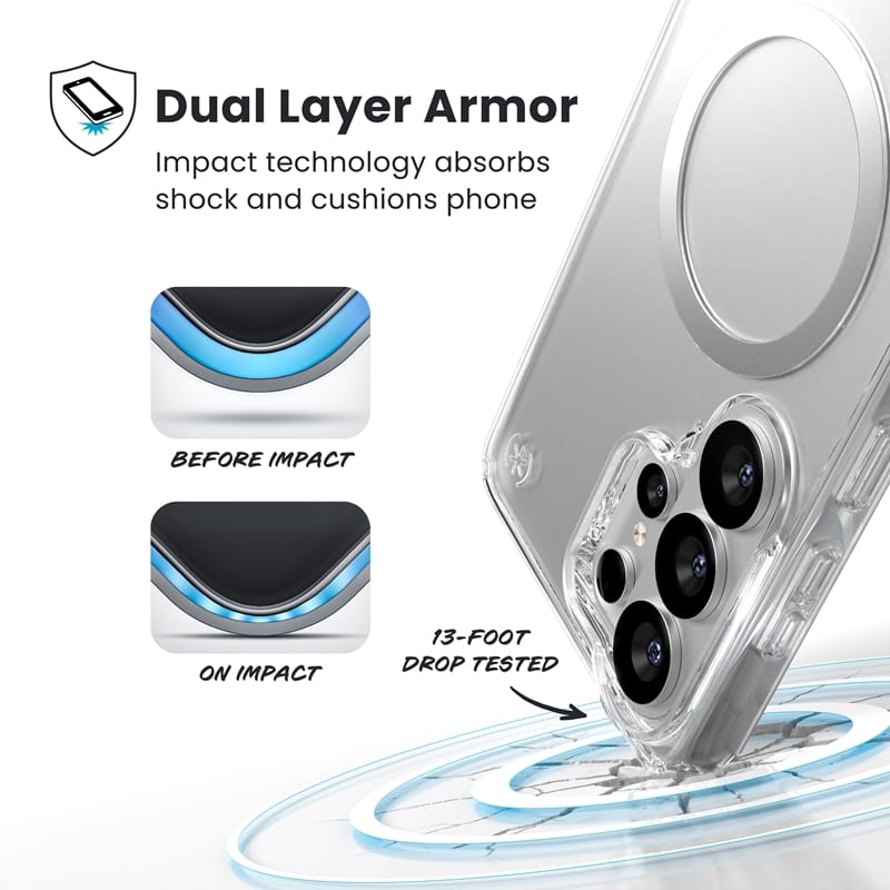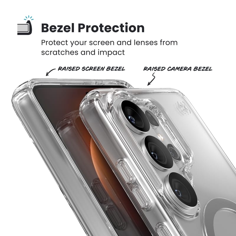 Speck Presidio® Perfect-Clear Magnet to nowoczesne, przezroczyste etui z wbudowanym pierścieniem magnetycznym, kompatybilnym z akcesoriami MagSafe®. Zaprojektowane specjalnie dla Samsung Galaxy S26 Ultra, pozwala zachować oryginalny wygląd smartfona, jednocześnie oferując wysoki poziom ochrony i wygodę codziennego użytkowania.