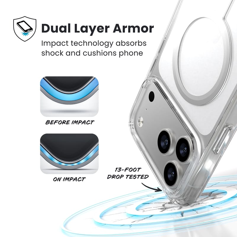 Presidio® Perfect Clear MagSafe to przezroczyste etui z wbudowanym magnesem, kompatybilnym z akcesoriami Apple MagSafe®.Konstrukcja etui wykonana została w technologii IMPACTIUM™ Shock Barrier, która chroni telefon przed uszkodzeniami podczas upadku z wysokości prawie 4 m. To wszystko dzięki dwóm warstwom: zewnętrznej, która rozprasza siłę uderzenia oraz wewnętrznej IMPACTIUM™, absorbującej wstrząs.Specjalna powłoka etui jest odporna na przebarwienia pod wpływem światła UV i zapobiega żółknięciu. Podwyższona ramka wokół ekranu i aparatu zapewnia dodatkową ochronę przed zarysowaniami.Wbudowana powłoka antybakteryjna ogranicza rozwój bakterii, chroniąc obudowę i tworząc czystszą powierzchnię.Cechy produktu:· Wbudowany pierścień magnetyczny kompatybilny z ładowarką MagSafe· Materiał odporny na odbarwienia UV i żółknięcie· Wytrzymuje upadki z wysokości nawet 4 metrów· Wbudowana powłoka antybakteryjna· Podwyższona ramka ekranu i aparatu· Kompatybilna z bezprzewodowymi ładowarkami Qi· Nie blokuje płatności zbliżeniowych Apple Pay· Kompatybilność: Apple iPhone 17 Pro Max