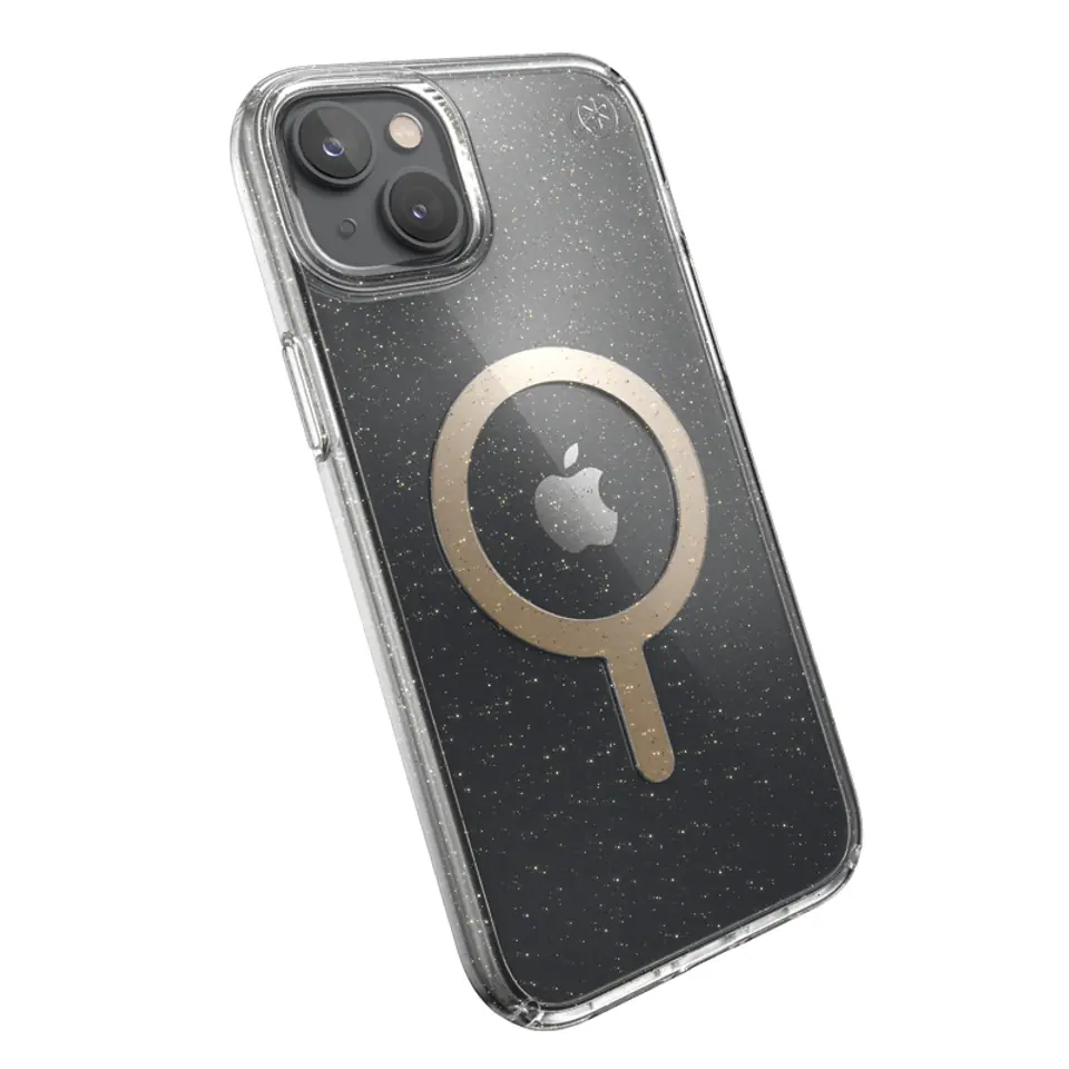 Speck Presidio Perfect-Clear with Glitter + MagSafe - Etui iPhone 15 Plus / 14 Plus z powłoką MICROBAN Clear / Gold Glitter