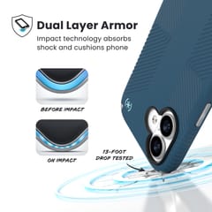 Speck Presidio2 Grip MagSafe to najbardziej zaawansowane etui z wbudowanym pierścieniem magnetycznym, zaprojektowane specjalnie dla iPhone’a 17. Antypoślizgowa konstrukcja z precyzyjnymi nacięciami (inverted grips) gwarantuje pewny i wygodny chwyt w każdych warunkach. Matowa powierzchnia w eleganckim odcieniu Deep Sea ze srebrnymi akcentami nadaje urządzeniu nowoczesny i stylowy charakter.