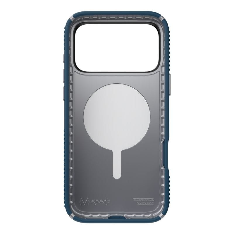 Speck Presidio2 Grip MagSafe to najbardziej zaawansowane etui z wbudowanym pierścieniem magnetycznym, zaprojektowane specjalnie dla iPhone’a 17 Pro Max. Antypoślizgowa konstrukcja z precyzyjnymi nacięciami (inverted grips) gwarantuje pewny i wygodny chwyt w każdych warunkach. Matowa powierzchnia w eleganckim odcieniu Deep Sea ze srebrnymi akcentami nadaje urządzeniu nowoczesny i stylowy charakter.