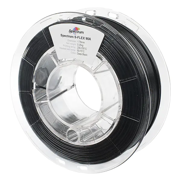 Tam, gdzie niezbędna jest trwałość i elastyczność Filament S-Flex 90ASpectrum S-Flex 90A to filament przeznaczony do druku 3D umożliwiający wytwarzanie elastycznych elementów w znacznie prostszy sposób niż w przypadku innych materiałów tego typu. Odpowiedni skład tego materiału zapewnia dobrą adhezję nie tylko między warstwami, ale także pomiędzy drukowanym elementem i platformą roboczą.Odporność na działanie węglowodorów i dobra laminacja pomiędzy warstwami umożliwia wytwarzanie elementów uszczelniających, od których wymaga się odporności na działanie wszelkiego rodzaju płynów eksploatacyjnych oraz zapewnienia jak najwyżej szczelności. Ponadto elementy wytworzone z tego materiału znajdą zastosowanie jako części rozpraszające energię, a więc wszelkiego rodzaju odbojniki czy tłumiki drgań.Do 500% wydłużenia przy zerwaniu Filament S-FlexSzczegółowe dane techniczneGęstość materiału 1.22 g/cm3Temperatura druku: 200-230°CTemperatura stołu 50-70°CPrędkość druku: 15-50 mm/sVerify your spool TAK Kluczowe cechy:- do 500% wydłużenia przy zerwaniu- wysoka odporność na rozciąganie i rozdzieranie- twardość Shore 90A- odporność na wiele popularnych olejów przemysłowych i chemikaliów- drukowanie bez skurczu i podwijania podstawy drukowanego elementu- ograniczenie „nitkowania” podczas ruchów jałowych drukarki- stabilność kształtu oraz właściwości materiału w zakresie temp. -30 do +60°CZastosowanie:- wytwarzanie uszczelnień o wysokiej odporności chemicznej- wykonywanie elementów pełniących rolę adsorbentów energii- części funkcjonalne- tuleje, tłumiki drgań, futerały ochronne- części zatrzaskoweOprócz wymienionych wyżej właściwości materiał S-Flex 90A charakteryzuje się także dobrą odpornością na promieniowanie UV oraz wysoką odpornością na starzenie. Filament elastyczny S-Flex 90A wykazuje odporność na działanie słabych i rozcieńczonych kwasów i zasad.