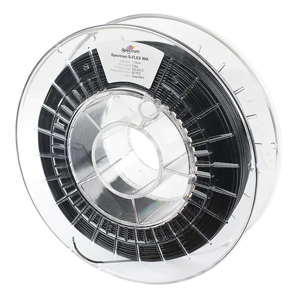 Tam, gdzie niezbędna jest trwałość i elastyczność Filament S-Flex 90ASpectrum S-Flex 90A to filament przeznaczony do druku 3D umożliwiający wytwarzanie elastycznych elementów w znacznie prostszy sposób niż w przypadku innych materiałów tego typu. Odpowiedni skład tego materiału zapewnia dobrą adhezję nie tylko między warstwami, ale także pomiędzy drukowanym elementem i platformą roboczą.Odporność na działanie węglowodorów i dobra laminacja pomiędzy warstwami umożliwia wytwarzanie elementów uszczelniających, od których wymaga się odporności na działanie wszelkiego rodzaju płynów eksploatacyjnych oraz zapewnienia jak najwyżej szczelności. Ponadto elementy wytworzone z tego materiału znajdą zastosowanie jako części rozpraszające energię, a więc wszelkiego rodzaju odbojniki czy tłumiki drgań.Do 500% wydłużenia przy zerwaniu Filament S-FlexSzczegółowe dane techniczneGęstość materiału 1.22 g/cm3Temperatura druku: 200-230°CTemperatura stołu 50-70°CPrędkość druku: 15-50 mm/sVerify your spool TAK Kluczowe cechy:- do 500% wydłużenia przy zerwaniu- wysoka odporność na rozciąganie i rozdzieranie- twardość Shore 90A- odporność na wiele popularnych olejów przemysłowych i chemikaliów- drukowanie bez skurczu i podwijania podstawy drukowanego elementu- ograniczenie „nitkowania” podczas ruchów jałowych drukarki- stabilność kształtu oraz właściwości materiału w zakresie temp. -30 do +60°CZastosowanie:- wytwarzanie uszczelnień o wysokiej odporności chemicznej- wykonywanie elementów pełniących rolę adsorbentów energii- części funkcjonalne- tuleje, tłumiki drgań, futerały ochronne- części zatrzaskoweOprócz wymienionych wyżej właściwości materiał S-Flex 90A charakteryzuje się także dobrą odpornością na promieniowanie UV oraz wysoką odpornością na starzenie. Filament elastyczny S-Flex 90A wykazuje odporność na działanie słabych i rozcieńczonych kwasów i zasad.