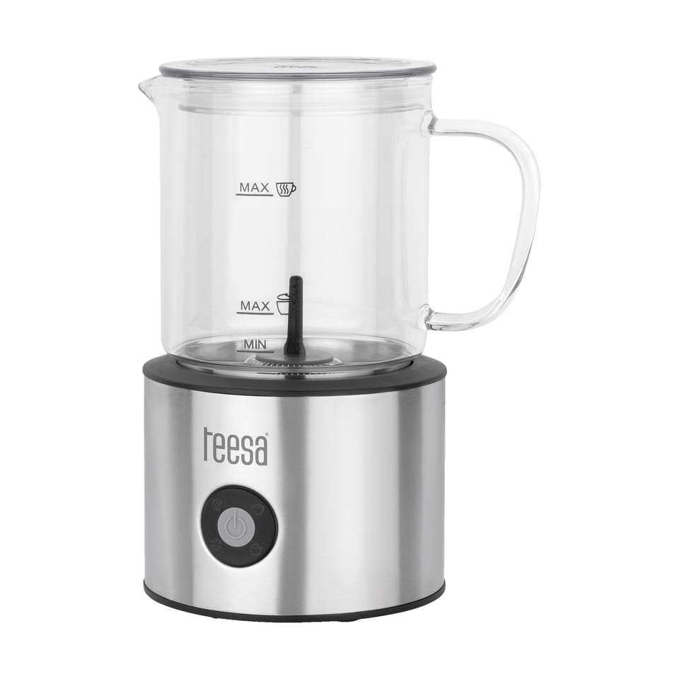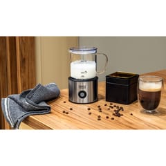----------GŁÓWNE CECHY----------Spienianie na zimno i ciepłoFunkcja podgrzewaniaŁatwa obsługa jednym przyciskiemAutomatyczne wyłączenieMagnetyczne mocowanie nasadkiPodstawa 360°Pojemnik na mleko ze szkła nadający się do mycia w zmywarceNienagrzewający się uchwytAntypoślizgowe stopki----------DANE TECHNICZNE----------Pojemność pojemnika na mleko: 740 mlMaks. ilość mleka przy spienianiu: 200 mlMaks. ilość mleka przy podgrzewaniu: 500 mlMoc: 600 WZasilanie: 220 – 240 V; 60 HzWaga: 985 gŚrednica: 115 mmWysokość: 200 mmDługość przewodu: 80 cm