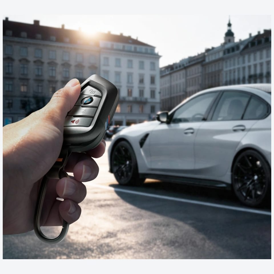 Spigen BK100 to stylowe i funkcjonalne etui zaprojektowane specjalnie dla kluczyków BMW G-Series, które łączy elegancję z codzienną ochroną. Obudowa harmonijnie łączy wzór karbonowy z sportowym, trójkolorowym akcentem, a wysokiej jakości materiał jest trwały, przyjemny w dotyku i odporny na ścieranie.W zestawie znajduje się solidny karabińczyk ze stopu cynku, który umożliwia wygodne zarządzanie kluczami. Etui amortyzujące wstrząsy skutecznie chroni kluczyk przed zarysowaniami, uderzeniami i codziennym zużyciem, zachowując jego nienaganny wygląd.Produkt jest kompatybilny z wybranymi kluczykami BMW i nie ogranicza obsługi przycisków ani sygnału. Montaż jest szybki i prosty, bez użycia narzędzi, a lekka konstrukcja pozwala na wygodne noszenie kluczyka w kieszeni lub torebce, łącząc codzienną ochronę z elegancją i komfortem użytkowania.*Przed zakupem sprawdź grubość górnej części swojego pilota BMW – jeśli wynosi około 8.85 mm, etui będzie pasować.Cechy produktu:· Nowoczesny design· Idealne dopasowanie do wybranych kluczyków BMW· Precyzyjnie wykonany· Łatwy w montażu i demontażu· Zapakowany w oryginalne opakowanieZestaw zawiera:· 1 x Etui na kluczyk Spigen BK100· 1 x Karabińczyk
