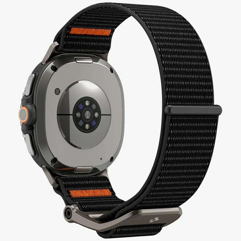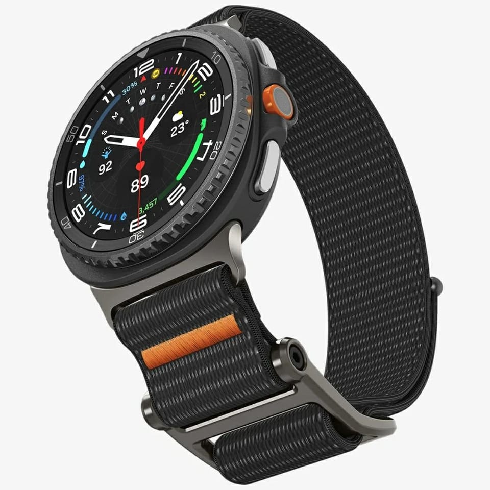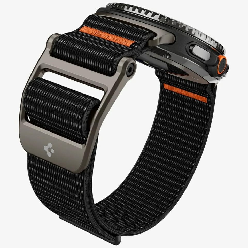 Spigen DuraPro Flex to stylowy i wytrzymały pasek do Samsung Galaxy Watch 8 / 8 Classic 40 / 44 / 46 mm, stworzony z myślą o codziennej wygodzie i elegancji.Wykonany z lekkiej, mocnej tkaniny nylonowej, zapewnia trwałość i komfort użytkowania.Pasek wyróżnia się minimalistycznym, ponadczasowym designem w kolorze czarnym z pomarańczowym akcentem, co nadaje mu nowoczesnego charakteru.Pasek wyposażono w zapięcie na rzep, które umożliwia swobodną regulację długości, idealnie dopasowując się do obwodu nadgarstka.Klamra ze stopu cynku zapewnia solidne mocowanie, a końcówka paska doskonale przylega, zwiększając komfort noszenia.Cechy produktu:· Lekki, wytrzymały pasek z tkaniny nylonowej· Regulacja na rzep dla idealnego dopasowania· Minimalistyczny design z pomarańczowym akcentem· Solidna klamra ze stopu cynku· Łatwy w montażu i demontażu· Kompatybilny z Samsung Galaxy Watch 8 / 8 Classic 40 / 44 / 46 mm