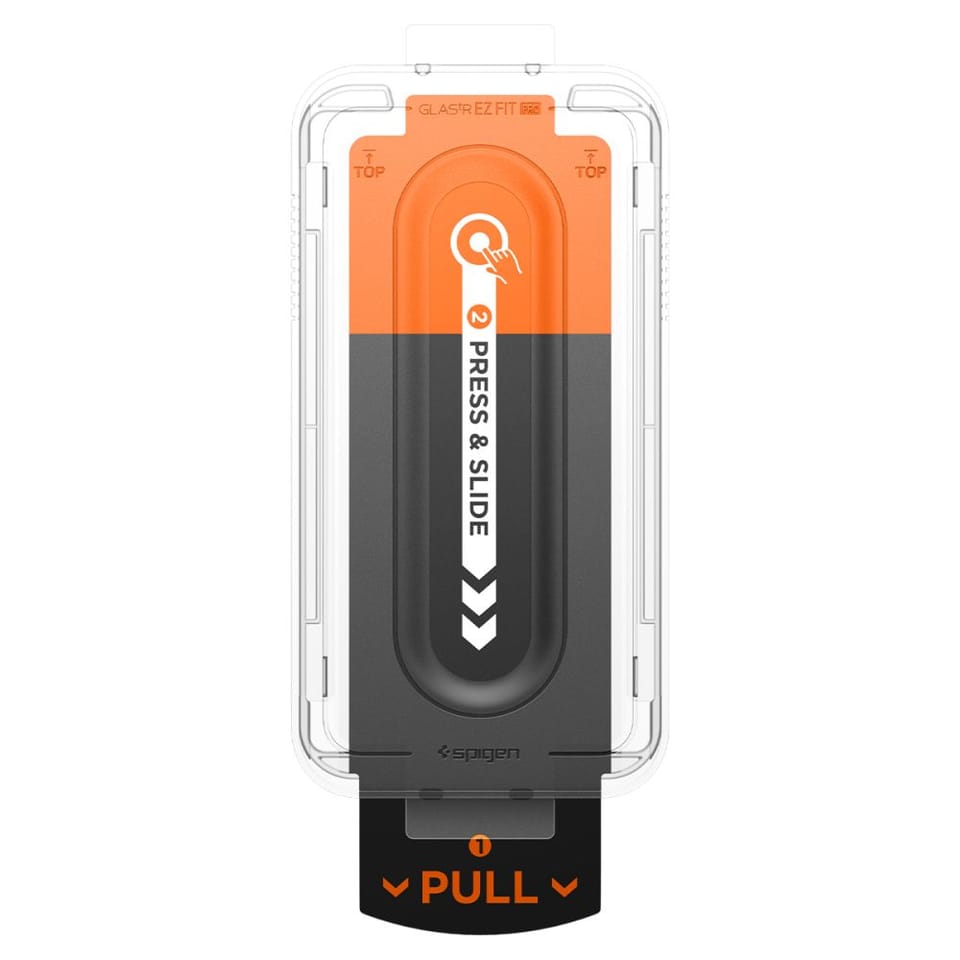 Szkło hartowane Spigen Glas.tR EZ Fit Pro to zaawansowana ochrona ekranu, stworzona z myślą o wygodzie i bezpieczeństwie użytkownika. Dzięki innowacyjnemu systemowi montażu EZ Fit Pro, aplikacja szkła jest szybka, precyzyjna i bezproblemowa – bez pęcherzyków powietrza i ryzyka przesunięcia.Produkt składa się z kilku warstw, w tym powłoki oleofobowej, która minimalizuje widoczność odcisków palców, warstwy ochronnej absorbującej wstrząsy oraz hartowanego szkła o twardości 9H, skutecznie zabezpieczającego ekran przed zarysowaniami i uszkodzeniami mechanicznymi.Glas.tR EZ Fit Pro zachowuje pełną przejrzystość oraz wysoką czułość na dotyk, nie wpływając na komfort codziennego użytkowania.*Szkło/Folia zostały precyzyjnie dopasowane jedynie do płaskiej powierzchni wyświetlacza o zaokrąglonej konstrukcji, na podstawie szablonu stworzonego przez producenta urządzenia. Taki kształt zapewnia pełną kompatybilność z innymi produktami ochronnymi.INSTRUKCJA MONTAŻU:1.Przeprowadź instalację w łazience zaraz po kąpieli – unosząca się para wodna zredukuje obecność kurzu w powietrzu, co pozwoli uniknąć jego osadzania się na ekranie.2. Starannie oczyść i odtłuść ekran, a następnie wypoleruj go suchą ściereczką, aby uzyskać idealnie gładką i czystą powierzchnię.3.Umieść ramkę montażową z przygotowanym szkłem na przedniej części telefonu, dokładnie dopasowując ją do krawędzi urządzenia.4.Ostrożnie usuń ramkę wraz z folią ochronną, a następnie dociśnij szkło do ekranu, wykonując okrężne ruchy przez kilkadziesiąt sekund. Upewnij się, że szkło dokładnie przylega, a warstwa klejąca solidnie się związała. W razie potrzeby usuń powietrze spod powierzchni, dociskając delikatnie miejsce po miejscu.Cechy produktu:· Twardość 9H zapewnia odporność na zarysowania i uszkodzenia ekranu· Zaokrąglone rogi 2.5D wpływają na zwiększenie wytrzymałości szkła podczas upadku telefonu, zapobiegając pokruszeniu szkła i w następstwie skaleczeniu użytkownika· Idealna przejrzystość· Case Friendly· Nie wpływa na funkcjonalność dotyku· Wymiary: 152 x 75 mmZawartość zestawu:· 1 x Szkło hartowane Spigen Glas.tR "EZ Fit Pro"· 1 x Zestaw instalacyjny