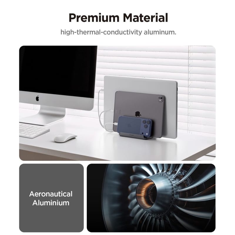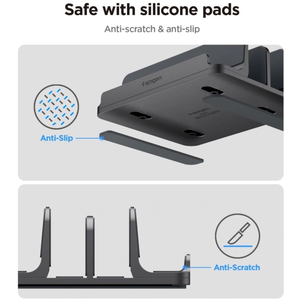 Spigen LD208S4 Vertical Laptop Stand – Aluminiowy organizer / stojak na 4 urządzenia Space Grey