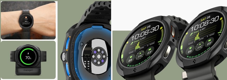 Spigen Liquid Air to etui wykonane z trwałego i odpornego na wstrząsy elastycznego TPU. Nie pogrubia znacząco zegarka, zachowując jego oryginalny kształt, jednocześnie zapewniając mu ochronę przed zarysowaniami. Jest super lekkie i łatwe w montażu.Budowa zapewnia dostęp do wszystkich klawiszy funkcyjnych, nie ograniczając jego funkcjonalności.Cechy produktu:· Precyzyjnie wykonany· Smukły kształt· Konstrukcja wykonana z TPU· Ochrona przed zarysowaniem urządzenia· Dostęp do wszystkich klawiszy funkcyjnych· Łatwy w montażu i demontażu· Kompatybilność: Samsung Galaxy Watch 8 44 mm