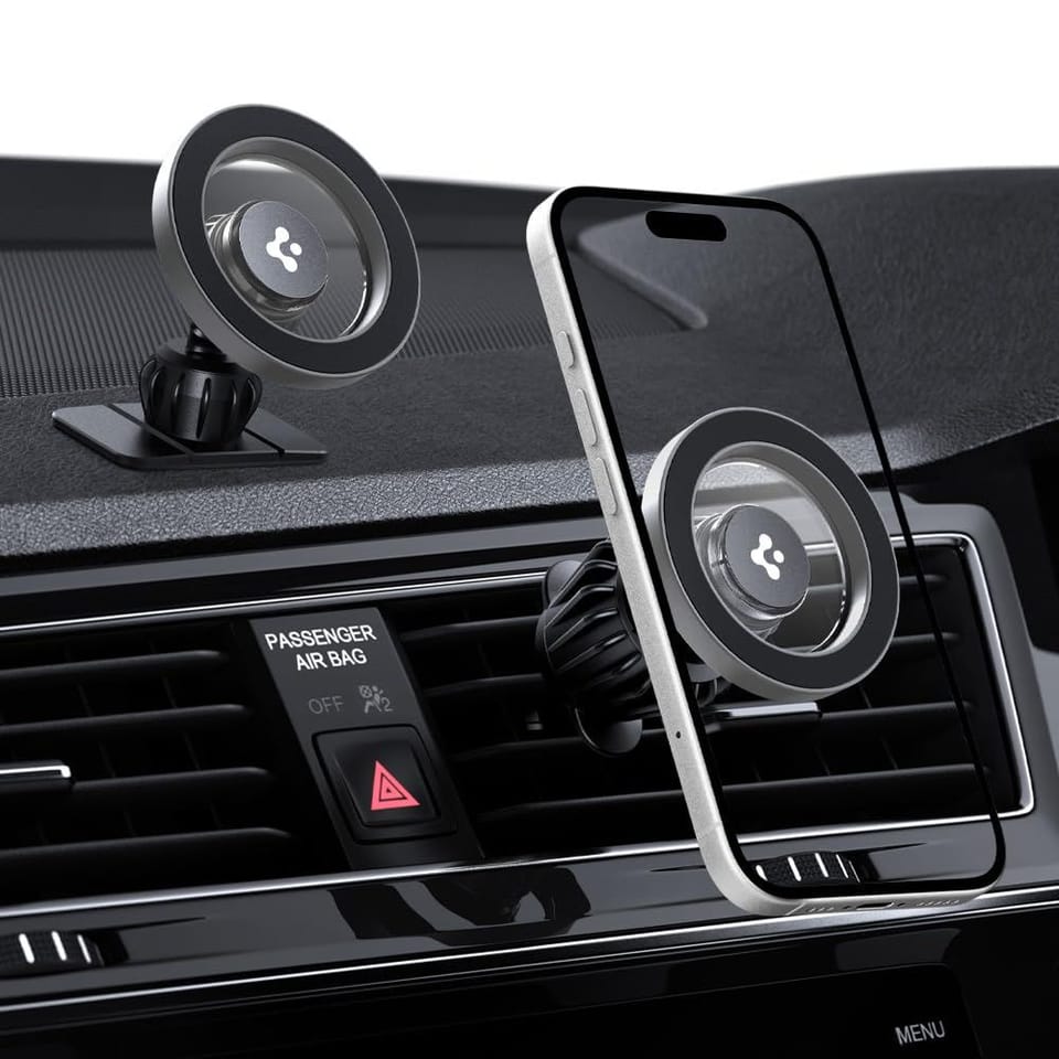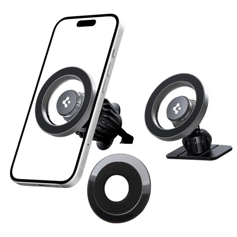Uchwyt samochodowy Spigen MFT13 to nowoczesne i funkcjonalne rozwiązanie dla każdego kierowcy, który ceni wygodę oraz bezpieczeństwo podczas jazdy. Dzięki pełnej kompatybilności z technologią MagSafe, uchwyt zapewnia błyskawiczne i stabilne mocowanie smartfona przy użyciu silnego połączenia magnetycznego.Zastosowane magnesy klasy N52 gwarantują wyjątkowo mocny i pewny chwyt – nawet podczas gwałtownego hamowania, dynamicznych manewrów czy jazdy po nierównej nawierzchni. W zestawie znajduje się również metalowy pierścień, który umożliwia korzystanie z uchwytu także z urządzeniami niewspierającymi MagSafe.Dzięki konstrukcji z możliwością obrotu o 360°, uchwyt pozwala na dowolne ustawienie telefonu w pionie lub poziomie, zapewniając optymalny kąt widzenia i wygodę obsługi. Uniwersalny system montażu umożliwia przymocowanie uchwytu zarówno do kratki wentylacyjnej, jak i deski rozdzielczej, co sprawia, że idealnie sprawdzi się w każdym typie samochodu.Cechy produktu:· Kompatybilny z MagSafe· Silne magnesy klasy N52 zapewniające stabilność· Obrotowa głowica 360°· Możliwość montażu na kratce wentylacyjnej lub desce rozdzielczej· Funkcjonalna, trwała i niezawodna konstrukcja· Zapakowany w oryginalne opakowanieZestaw zawiera:· 1 x Uchwyt samochodowy Spigen MFT13· 1 x Końcówka do montażu na desce rozdzielczej· 1 x Końcówka do kratki wentylacyjnej· 1 x Metalowa blaszka magnetyczna
