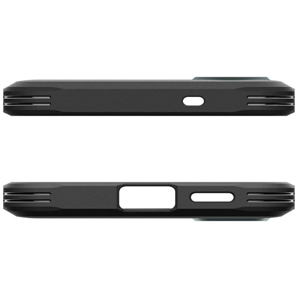 Spigen Tough Armor MagSafe to hybrydowe etui, które zostało wyposażone w magnetyczny pierścień kompatybilny z akcesoriami MagSafe®,Wewnętrzna warstwa została wykonana z trwałego i odpornego na wstrząsy elastycznego TPU, a na jego zewnętrznym panelu zastosowano twardy i wytrzymały poliwęglan. Wnętrze zostało uzupełnione cienką warstwą pianki redukującej wstrząsy. Etui jest łatwe w montażu, a jego lekko wystające krawędzie chronią kamerę i ekran przed zarysowaniami na płaskich powierzchniach.Pokrowiec został wyposażony w technologie Air Cushion (poduszki powietrzne w rogach), która amortyzują wstrząsy, chroniąc smatfona podczas upadków.Etui zostało przetestowane w ramach standardu MIL-STD-810G armii Stanów Zjednoczonych w zakresie odporności na upadki.Obudowa została wyposażona w nóżkę, umożliwiającą oglądanie tego, co aktualnie dzieje się na wyświetlaczu telefonu bez konieczności jego trzymania.Budowa zapewnia dostęp do wszystkich klawiszy funkcyjnych, gniazd i portów telefonu, nie ograniczając jego funkcjonalności.Cechy produktu:· Magnetyczny pierścień kompatybilny z akcesoriami MagSafe®· Zintegrowane poduszki powietrzne w narożnikach· Wbudowana nóżka· Konstrukcja wykonana z TPU / PC· Ochrona przed zarysowaniem urządzenia oraz uszkodzeniem klawiszy· Dostęp do wszystkich klawiszy funkcyjnych, gniazd i portów telefonu· Łatwy w montażu i demontażu· Spełnia wojskowe standardy MIL-STD-810G