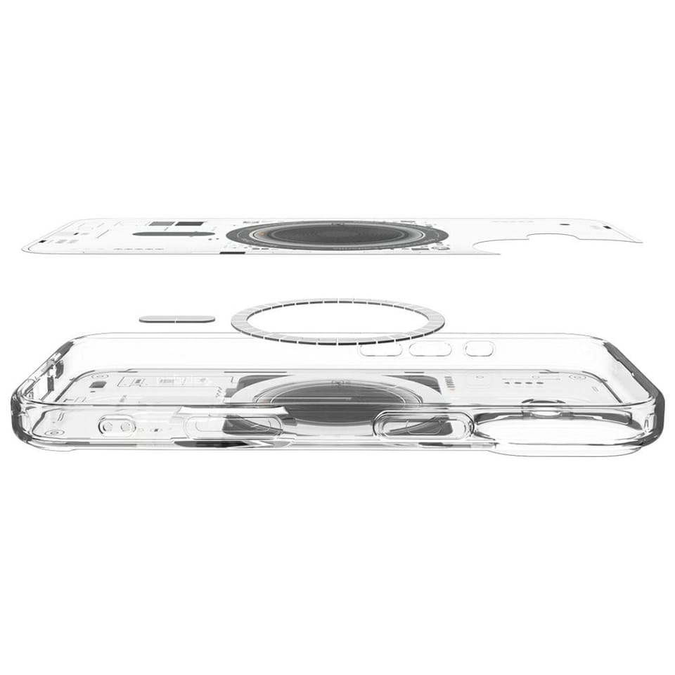 Spigen Ultra Hybrid Mag MagSafe to etui, którego ramki zostały wykonane z trwałego i odpornego na wstrząsy elastycznego TPU zwiększającego przyczepność i komfort użytkowania, a na jego tylnym panelu zastosowano wytrzymały poliwęglan. Etui jest lekkie i łatwe w montażu, a jego lekko wystające krawędzie chronią kamerę i ekran przed zarysowaniami na płaskich powierzchniach.Pokrowiec został wyposażony w technologie Air Cushion (poduszki powietrzne w rogach), która amortyzują wstrząsy, chroniąc smatfona podczas upadków.Etui zostało przetestowane w ramach standardu MIL-STD-810G armii Stanów Zjednoczonych w zakresie odporności na upadki.Budowa zapewnia dostęp do wszystkich klawiszy funkcyjnych, gniazd i portów telefonu, nie ograniczając jego funkcjonalności.Etui posiada wewnątrz magnetyczny pierścień kompatybilny z akcesoriami MagSafe gwarantując łatwe i szybkie ładowanie.Cechy produktu:· Wbudowany pierścień magnetyczny kompatybilny z ładowarką MagSafe· Zintegrowane poduszki powietrzne w narożnikach· Smukły kształt· Konstrukcja wykonana z TPU / PC· Ochrona przed zarysowaniem urządzenia oraz uszkodzeniem klawiszy· Dostęp do wszystkich klawiszy funkcyjnych, gniazd i portów telefonu· Idealnie dopasowany