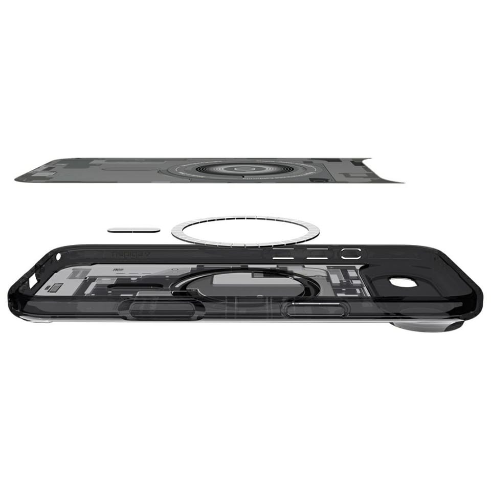 Spigen Ultra Hybrid Mag MagSafe to etui, którego ramki zostały wykonane z trwałego i odpornego na wstrząsy elastycznego TPU zwiększającego przyczepność i komfort użytkowania, a na jego tylnym panelu zastosowano wytrzymały poliwęglan. Etui jest lekkie i łatwe w montażu, a jego lekko wystające krawędzie chronią kamerę i ekran przed zarysowaniami na płaskich powierzchniach.Pokrowiec został wyposażony w technologie Air Cushion (poduszki powietrzne w rogach), która amortyzują wstrząsy, chroniąc smatfona podczas upadków.Etui zostało przetestowane w ramach standardu MIL-STD-810G armii Stanów Zjednoczonych w zakresie odporności na upadki.Budowa zapewnia dostęp do wszystkich klawiszy funkcyjnych, gniazd i portów telefonu, nie ograniczając jego funkcjonalności.Etui posiada wewnątrz magnetyczny pierścień kompatybilny z akcesoriami MagSafe gwarantując łatwe i szybkie ładowanie.Cechy produktu:· Wbudowany pierścień magnetyczny kompatybilny z ładowarką MagSafe· Zintegrowane poduszki powietrzne w narożnikach· Smukły kształt· Konstrukcja wykonana z TPU / PC· Ochrona przed zarysowaniem urządzenia oraz uszkodzeniem klawiszy· Dostęp do wszystkich klawiszy funkcyjnych, gniazd i portów telefonu· Idealnie dopasowany