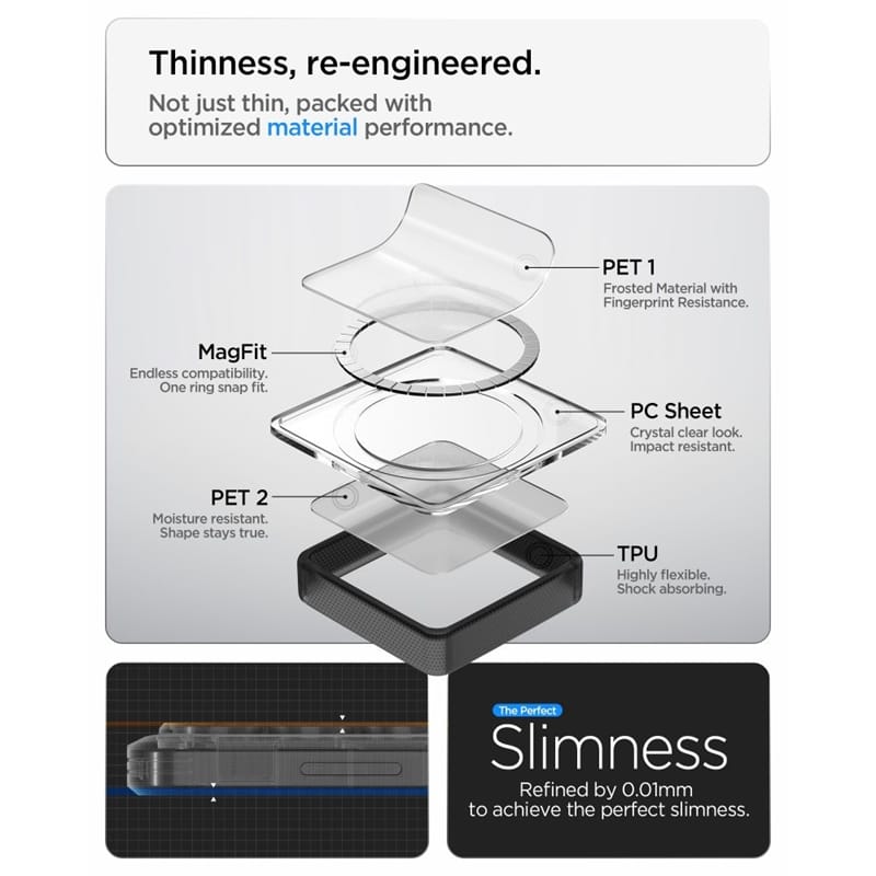 Spigen Ultra Hybrid Mag MagSafe to etui, którego ramki zostały wykonane z trwałego i odpornego na wstrząsy elastycznego TPU zwiększającego przyczepność i komfort użytkowania, a na jego tylnym panelu zastosowano wytrzymały poliwęglan. Etui jest lekkie i łatwe w montażu, a jego lekko wystające krawędzie chronią kamerę i ekran przed zarysowaniami na płaskich powierzchniach.Pokrowiec został wyposażony w technologie Air Cushion (poduszki powietrzne w rogach), która amortyzują wstrząsy, chroniąc smatfona podczas upadków.Etui zostało przetestowane w ramach standardu MIL-STD-810G armii Stanów Zjednoczonych w zakresie odporności na upadki.Budowa zapewnia dostęp do wszystkich klawiszy funkcyjnych, gniazd i portów telefonu, nie ograniczając jego funkcjonalności.Etui posiada wewnątrz magnetyczny pierścień kompatybilny z akcesoriami MagSafe gwarantując łatwe i szybkie ładowanie.Cechy produktu:· Wbudowany pierścień magnetyczny kompatybilny z ładowarką MagSafe· Zintegrowane poduszki powietrzne w narożnikach· Smukły kształt· Konstrukcja wykonana z TPU / PC· Ochrona przed zarysowaniem urządzenia oraz uszkodzeniem klawiszy· Dostęp do wszystkich klawiszy funkcyjnych, gniazd i portów telefonu· Idealnie dopasowany*UWAGA: Ładowarka MagSafe nie jest częścią zestawu