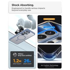 Spigen Ultra Hybrid Mag MagSafe to etui, którego ramki zostały wykonane z trwałego i odpornego na wstrząsy elastycznego TPU zwiększającego przyczepność i komfort użytkowania, a na jego tylnym panelu zastosowano wytrzymały poliwęglan. Etui jest lekkie i łatwe w montażu, a jego lekko wystające krawędzie chronią kamerę i ekran przed zarysowaniami na płaskich powierzchniach.Pokrowiec został wyposażony w technologie Air Cushion (poduszki powietrzne w rogach), która amortyzują wstrząsy, chroniąc smatfona podczas upadków.Etui zostało przetestowane w ramach standardu MIL-STD-810G armii Stanów Zjednoczonych w zakresie odporności na upadki.Budowa zapewnia dostęp do wszystkich klawiszy funkcyjnych, gniazd i portów telefonu, nie ograniczając jego funkcjonalności.Etui posiada wewnątrz magnetyczny pierścień kompatybilny z akcesoriami MagSafe gwarantując łatwe i szybkie ładowanie.Cechy produktu:· Wbudowany pierścień magnetyczny kompatybilny z ładowarką MagSafe· Zintegrowane poduszki powietrzne w narożnikach· Smukły kształt· Konstrukcja wykonana z TPU / PC· Ochrona przed zarysowaniem urządzenia oraz uszkodzeniem klawiszy· Dostęp do wszystkich klawiszy funkcyjnych, gniazd i portów telefonu· Idealnie dopasowany*UWAGA: Ładowarka MagSafe nie jest częścią zestawu