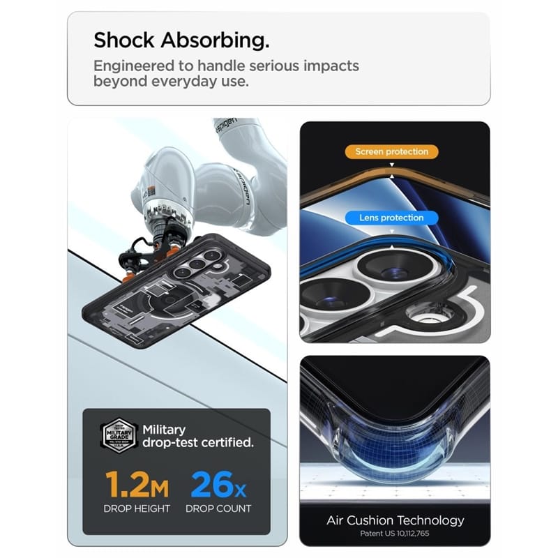 Spigen Ultra Hybrid Mag MagSafe to etui, którego ramki zostały wykonane z trwałego i odpornego na wstrząsy elastycznego TPU zwiększającego przyczepność i komfort użytkowania, a na jego tylnym panelu zastosowano wytrzymały poliwęglan. Etui jest lekkie i łatwe w montażu, a jego lekko wystające krawędzie chronią kamerę i ekran przed zarysowaniami na płaskich powierzchniach.Pokrowiec został wyposażony w technologie Air Cushion (poduszki powietrzne w rogach), która amortyzują wstrząsy, chroniąc smatfona podczas upadków.Etui zostało przetestowane w ramach standardu MIL-STD-810G armii Stanów Zjednoczonych w zakresie odporności na upadki.Budowa zapewnia dostęp do wszystkich klawiszy funkcyjnych, gniazd i portów telefonu, nie ograniczając jego funkcjonalności.Etui posiada wewnątrz magnetyczny pierścień kompatybilny z akcesoriami MagSafe gwarantując łatwe i szybkie ładowanie.Cechy produktu:· Wbudowany pierścień magnetyczny kompatybilny z ładowarką MagSafe· Zintegrowane poduszki powietrzne w narożnikach· Smukły kształt· Konstrukcja wykonana z TPU / PC· Ochrona przed zarysowaniem urządzenia oraz uszkodzeniem klawiszy· Dostęp do wszystkich klawiszy funkcyjnych, gniazd i portów telefonu· Idealnie dopasowany*UWAGA: Ładowarka MagSafe nie jest częścią zestawu