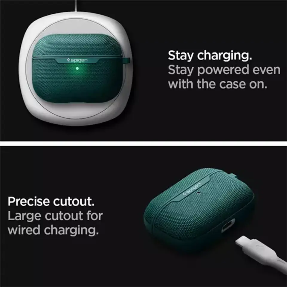 Eleganckie etui Urban Fit do Apple Airpods od firmy Spigen.Pokrowiec wykonany został z połączenia wytrzymałego materiału z poliwęglanem dla jeszcze lepszej ochrony słuchawek i komfortu użytkowania.Precyzyjnie docięte otwory na porty zewnętrzne, pozwalają na bezproblemowe podłączenie zestawu do ładowania.Etui współpracuje z funkcją ładowania bezprzewodowego.Spigen Urban Fit to akcesorium, które ochroni zestaw ze słuchawkami przed zniszczeniami podczas codziennego użytkowania. CECHY PRODUKTU:- 100% Oryginalny- Zapakowany w oryginalne opakowanie- Idealny dla ochrony przed uszkodzeniami- Łatwy w montażu i demontażu- Praktyczny i funkcjonalny- Świetnie dopasowany- Precyzyjnie docięte otwory ZESTAW ZAWIERA:1 x Spigen Urban Fit