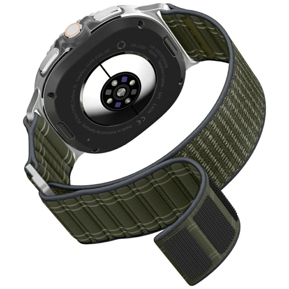 Pasek Spigen WBF0 Band to stylowe połączenie sportowej funkcjonalności i eleganckiego minimalizmu, zaprojektowane z myślą o użytkownikach Samsung Galaxy Watch 8 / 8 Classic. Wykonany z wytrzymałego i elastycznego nylonu, gwarantuje trwałość oraz wysoki komfort noszenia przez cały dzień – niezależnie od tego, czy jesteś w biurze, na treningu czy w podróży.Wyposażony w solidną klamrę typu hook buckle i zapięcie pętlowe, pasek zapewnia pewne i stabilne dopasowanie nawet podczas intensywnego ruchu. Wewnętrzna faktura z delikatnym wzorem zwiększa przyczepność, zapobiegając przesuwaniu się paska na nadgarstku, a elastyczna konstrukcja idealnie dopasowuje się do kształtu ręki.Dzięki intuicyjnemu systemowi regulacji, WBF0 Band można łatwo dostosować do każdego nadgarstka. Jego lekka i nowoczesna konstrukcja sprawia, że doskonale komponuje się zarówno z codziennymi, jak i bardziej eleganckimi stylizacjami.Cechy produktu:· Wykonany z wytrzymałego i elastycznego nylonu· Klamra typu hook buckle i zapięcie pętlowe dla stabilnego dopasowania· Wewnętrzna faktura zwiększająca przyczepność· Wysoki komfort noszenia przez cały dzień· Lekka, oddychająca i trwała konstrukcja· Prosty system regulacji· Uniwersalny, elegancko-sportowy design· Kompatybilny z: Samsung Galaxy Watch 8 / 8 Classic (40 / 44 / 46 mm)