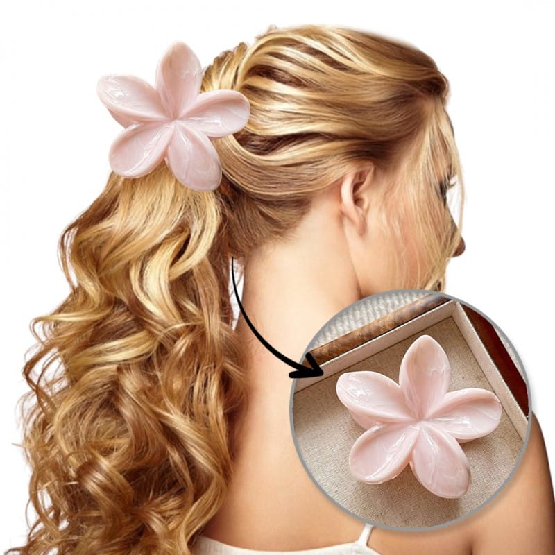 Spinka do włosów klamra XL kwiat, marmurek jasny róż 7,5 x 8cm SP406