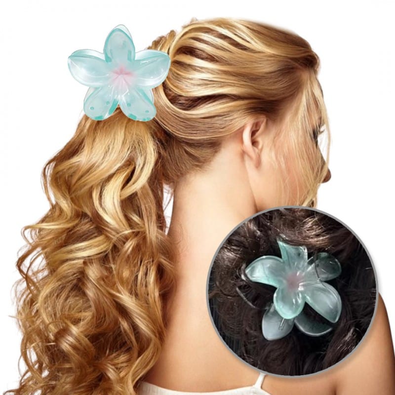 Spinka do włosów klamra XL kwiat OMBRE transparentny niebieski 7,5 x 8cm SP397N