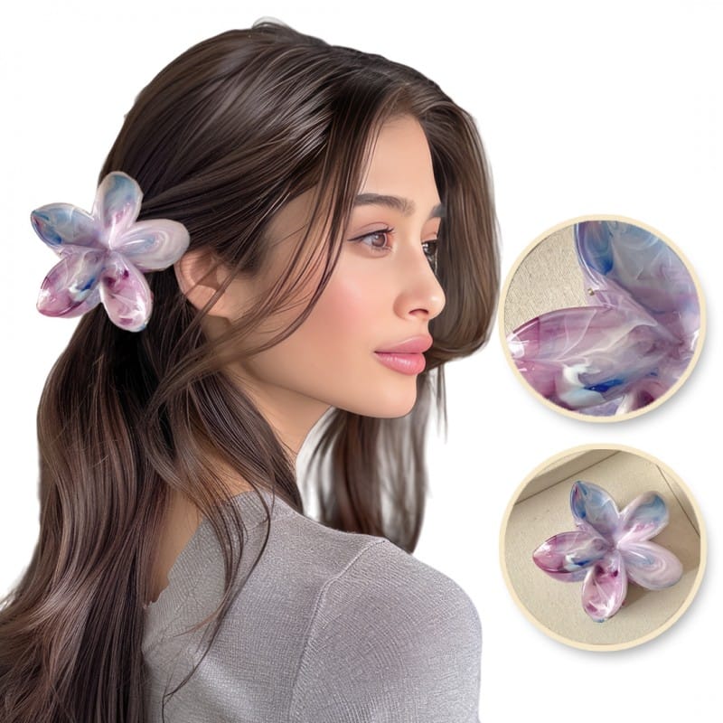 Spinka do włosów klamra XL kwiat Perłowy melanż 7,5cm x 8cm SP349
