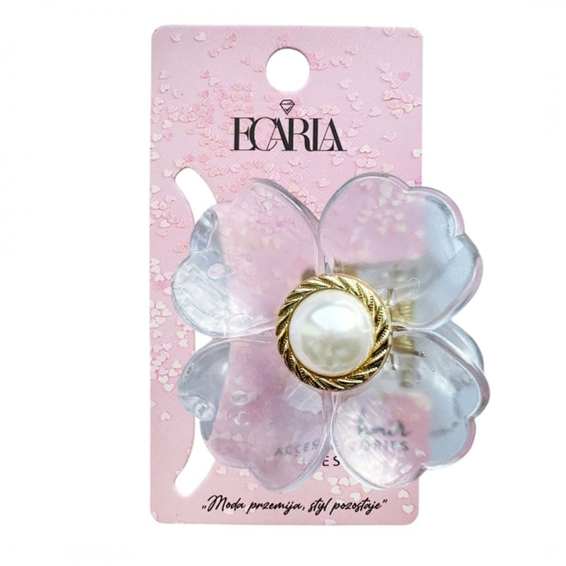 Spinka do włosów klamra XL kwiat transparentny złoty perła 6,5 x 6,5 cm SP271