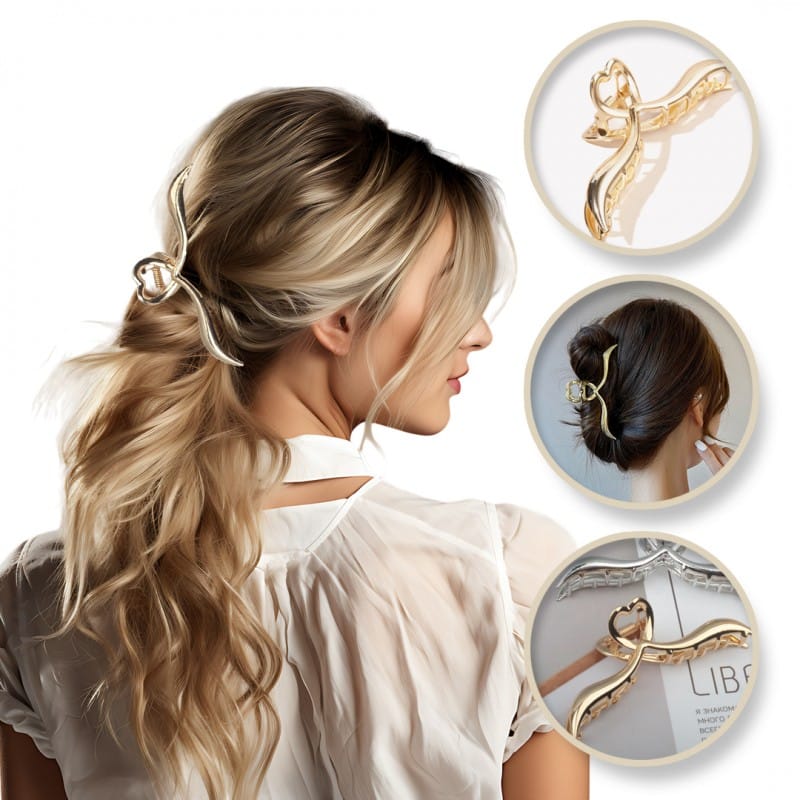 Spinka do włosów klamra ZŁOTA z SERCEM, metalowa mocna XL 11,5cm SP375