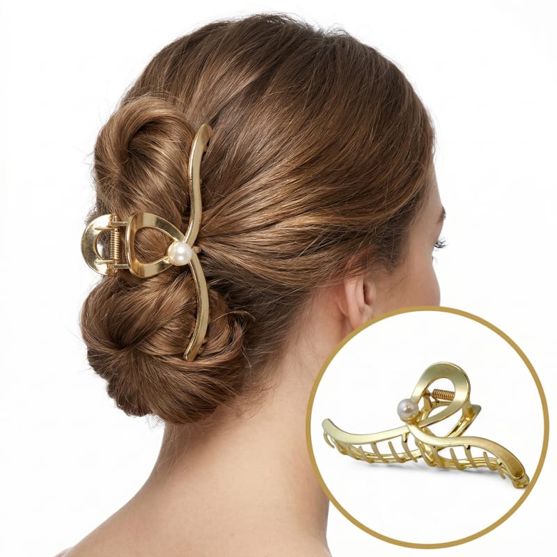 Spinka klamra do włosów XL metalowa złota z perłą 12,5 cm SP377