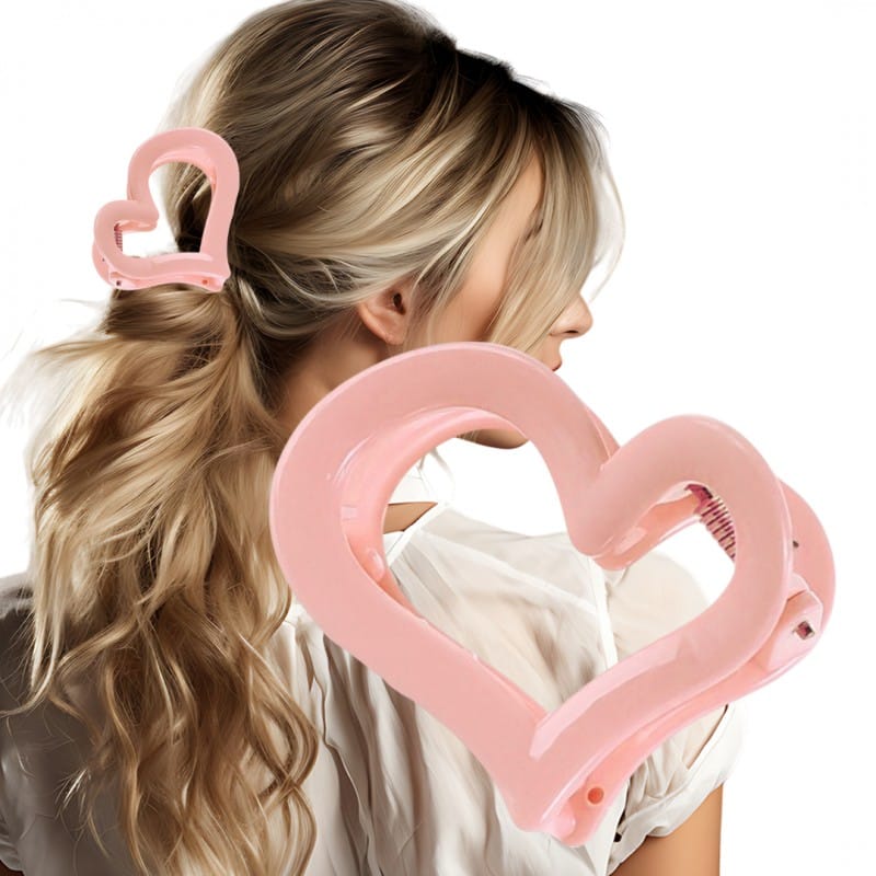 Spinka klamra do włosów XL serce różowe 6,5x6cm SP364R