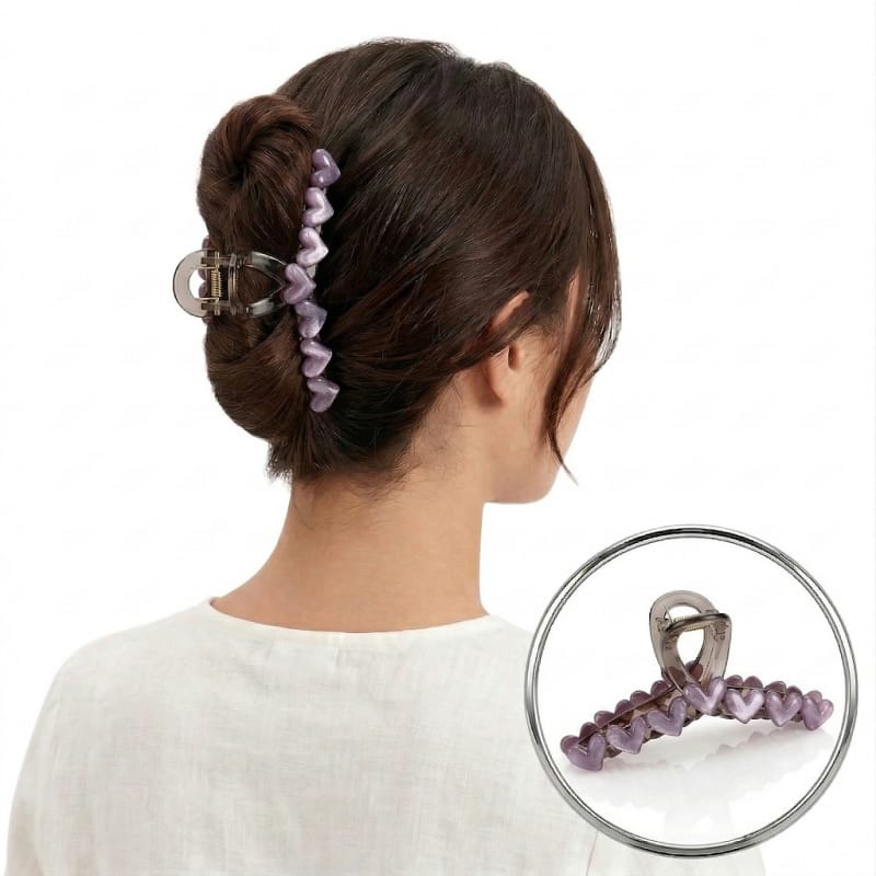 Spinka klamra do włosów z serduszkami XL 13x6 cm fioletowa SP352FIO