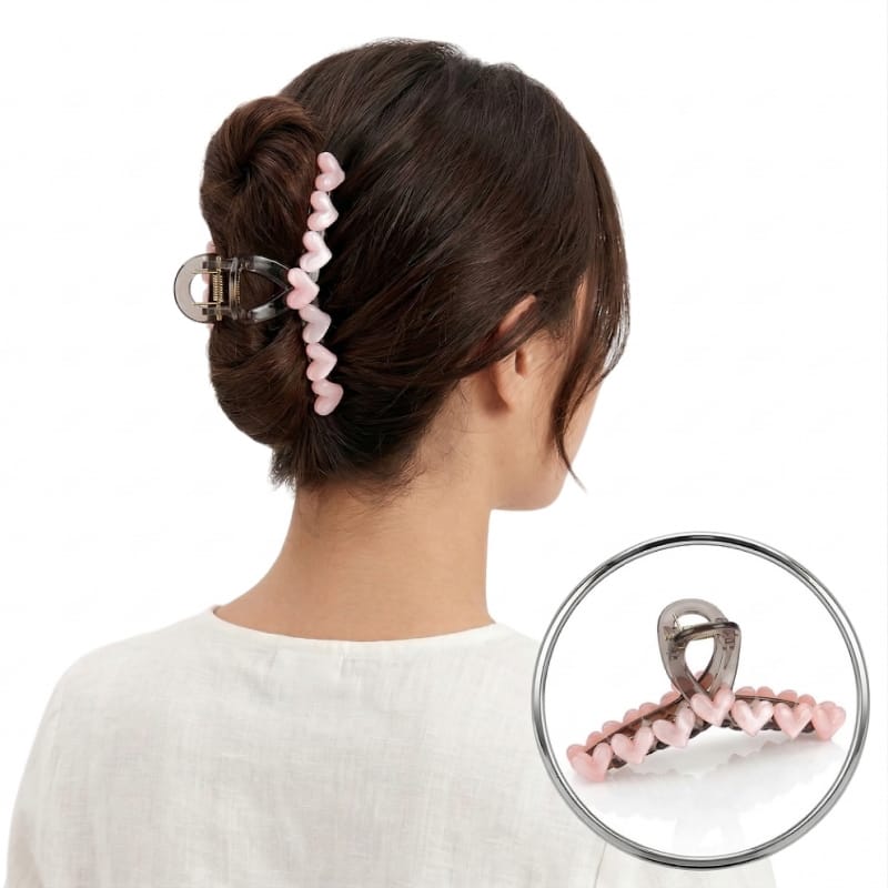 Spinka klamra do włosów z serduszkami XL 13x6 cm różowa SP352R