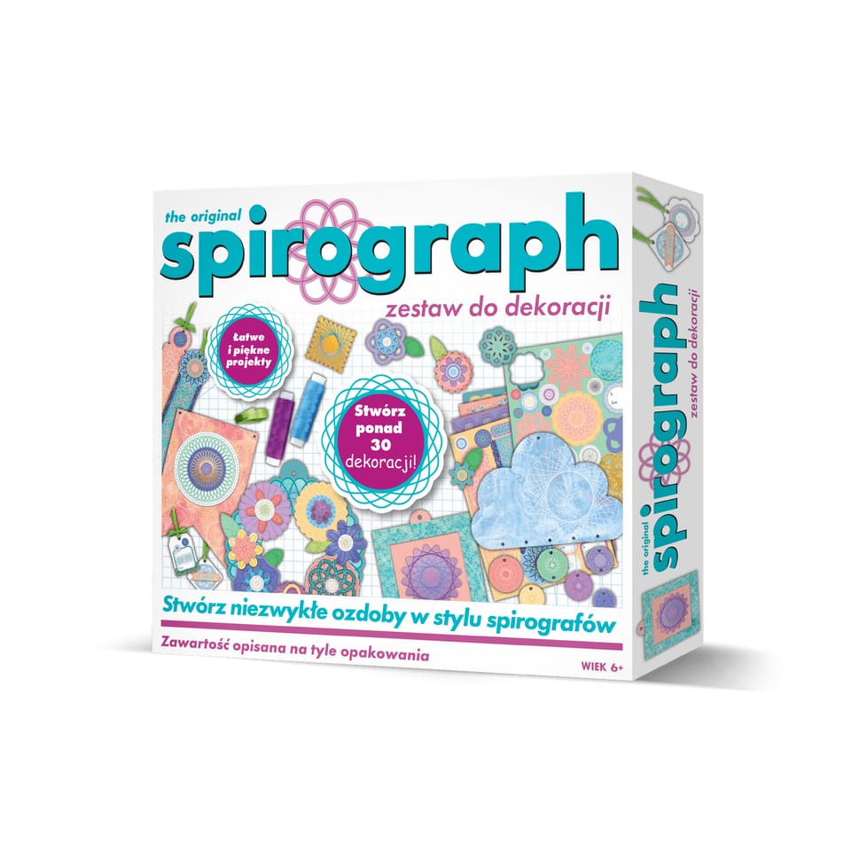Odkąd w 1965 Spirograph® został wprowadzony, sprawia, że aspirujący artyści w każdym wieku mogą tworzyć wyjątkowe i skomplikowane projekty. Początkowo zaprojektowane jako narzędzie dla inżynierów, koła i okręgi sprytnie łączą zasady sztuki i matematyki, tworząc unikatowe wzory. Spirograph® inspiruje i zachwyca od lat, a teraz pojawi się również w nowej, odświeżonej wersji w Polsce! Zestaw zawiera: 12 arkuszy z elementami do wyjęcia, 5 kartek okolicznościowych, 5 kopert, 6 magnesów samoprzylepnych, 2 ramki, 2 podkładki pod ramki, 1 arkusz naklejek, 1 arkusz dwustronnych kształtów z pianki samoprzylepnej, 2,7 m wstążki, 91m sznurka w dwóch kolorach, 1 instrukcję z przewodnikiemInstrukcja w zestawie jest w języku polskim.