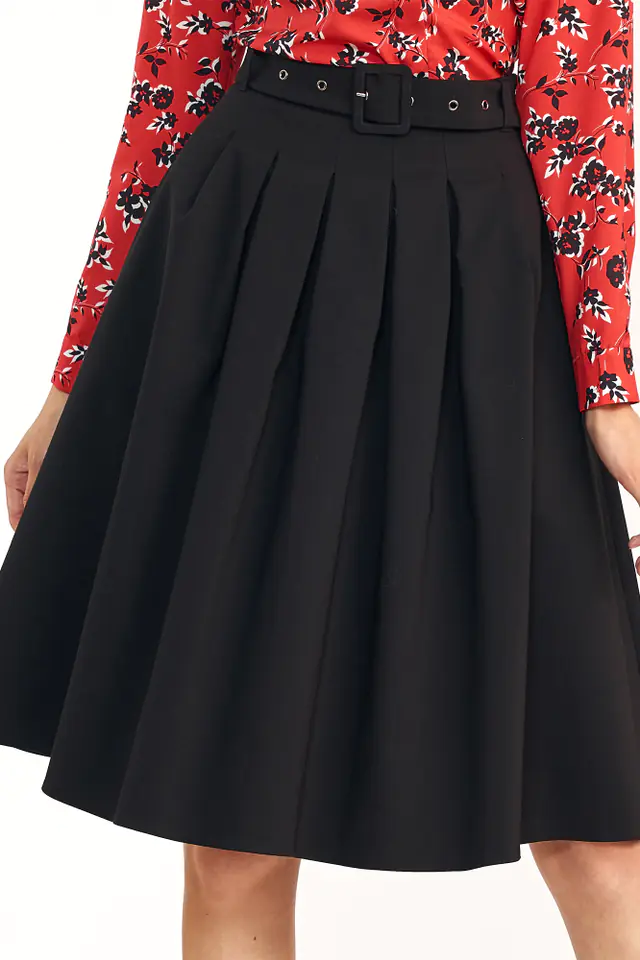 Ten model spódnicy idealnie podkreśli wszystkie atuty figury. Zachowawcza długość i krój w literę A, sprawdzi się jako uzupełnienie biurowej stylizacji. Pasek i zakładki dodają finezji i nadają zupełnie nowy charakter spódnicy. Ten fason jest ponadczasowy, wykorzystasz go na wiele okazji! Skład: 74,8% poliester, 23,1% wiskoza, 2,1% elastan Modelka na zdjęciu ma 177 cm wzrostu i ma na sobie rozmiar 36.