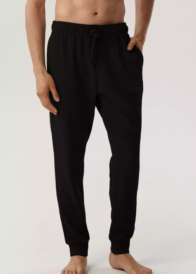 Spodnie dresowe dopasowane do sylwetki o uniwersalnej wysokości talii. Wiązane na sznurek, nogawki wykończone ściągaczem, boczne kieszenie. Dzianina jest niezwykle miękka i przyjemna w dotyku, rozciągliwa. Skład: 65% bawełna, 35% wiskoza.