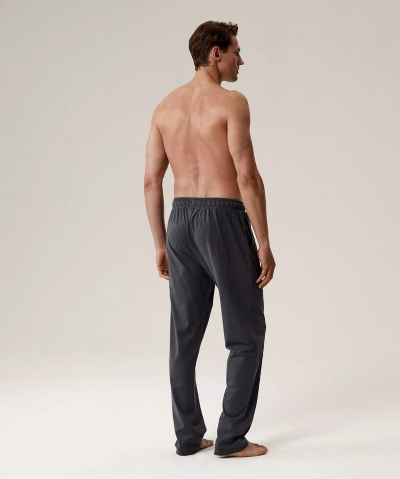 Spodnie męskie z efektem brzoskwini (peach effect), sprawdzą się zarówno do spania, jak i do codziennego, domowego relaksu. Spodnie mają talię z regulowanym sznurkiem, praktyczne boczne kieszenie oraz luźno puszczone nogawki. Skład:100% bawełna.