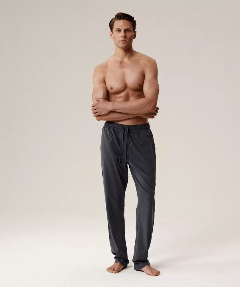 Spodnie męskie z efektem brzoskwini (peach effect), sprawdzą się zarówno do spania, jak i do codziennego, domowego relaksu. Spodnie mają talię z regulowanym sznurkiem, praktyczne boczne kieszenie oraz luźno puszczone nogawki. Skład:100% bawełna.