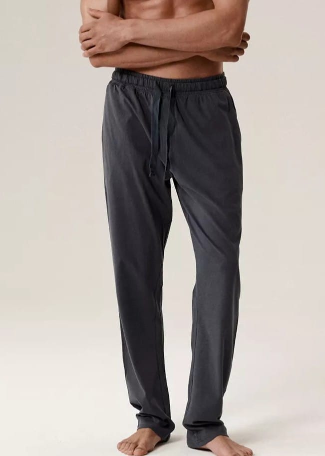 Spodnie męskie z efektem brzoskwini (peach effect), sprawdzą się zarówno do spania, jak i do codziennego, domowego relaksu. Spodnie mają talię z regulowanym sznurkiem, praktyczne boczne kieszenie oraz luźno puszczone nogawki. Skład:100% bawełna.