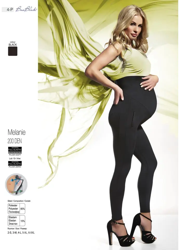 Legginsy ciążowe z wyższym stanem, z elastycznej dzianiny.