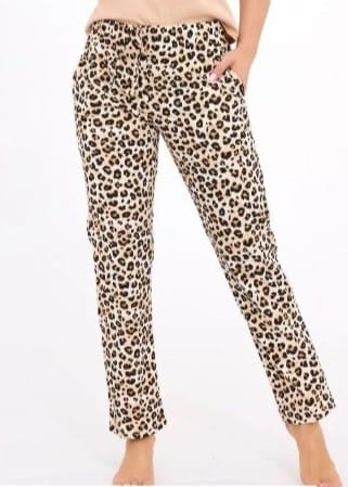 Spodnie w supermodny panterkowy wzór z miękkiej, oddychającej tkaniny z praktycznymi kieszeniami po bokach. Elastyczny pas, sznurek do regulacji . Skład: 100% bawełny.