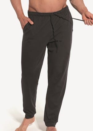 Wygodne, spodnie męskie. Wykonane z wysokiej jakości wyjątkowo miłej i miękkiej bawełny. Długie nogawki, w pasie guma z sznurkiem. Nogawki zakończone ściągaczem.
