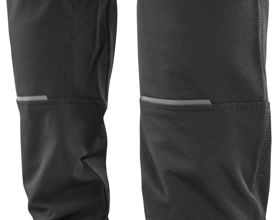 Kolana są wzmocnione i ergonomicznie ukształtowane. Nogawki zakończone elastycznym ściągaczem. Spodnie posiadają również subtelne elementy odblaskowe.